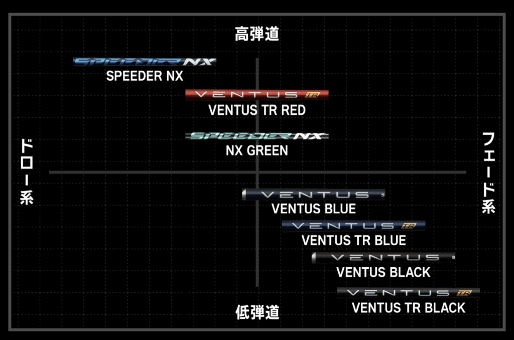 - ベンタスブラック:低弾道・低スピン。ハードヒッター向け。