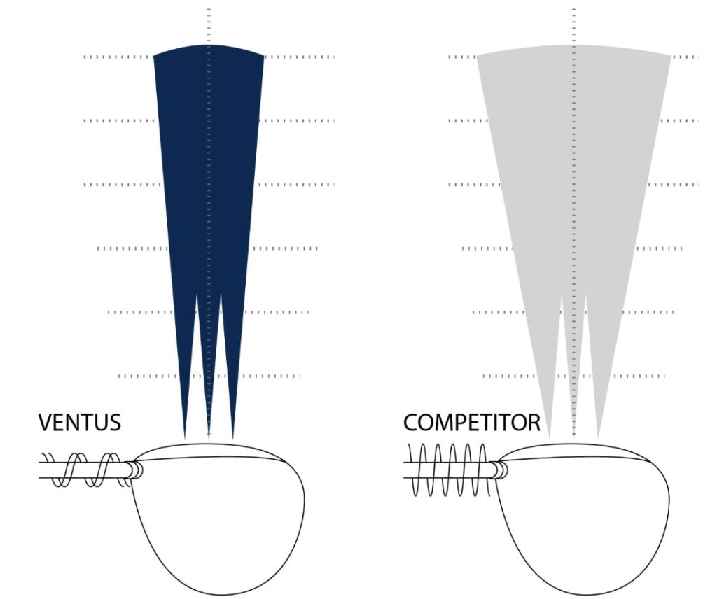 公式の計測では、5Xは 約330cpm前後 とされ、VENTUSシリーズの中でも高めの数値です。先端剛性が高く、元調子であるため、振動数以上に硬さを体感しやすい設計になっています。この硬さにより、インパクト時のブレが少なく、方向性の安定をサポートします。