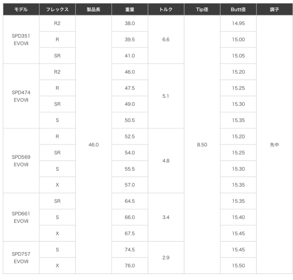 EVO VII | 2020 | 先中調子 | 高弾道・しなり戻りが速い |