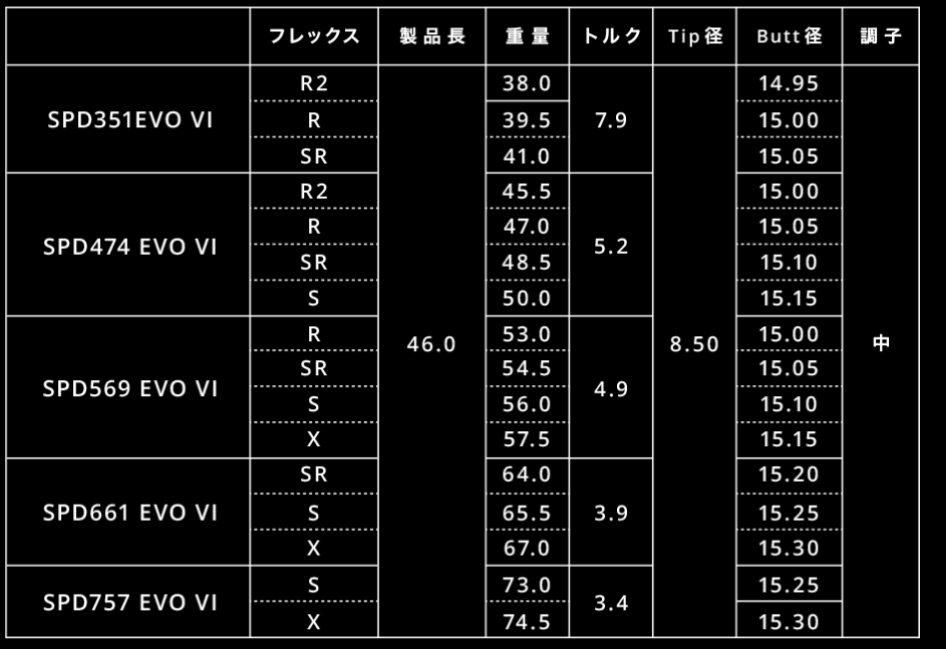 シリーズの中でも「飛距離性能と操作性のバランス」に優れたモデルとして知られ、特に先中調子系のスピーダーらしい高弾道とスピード感のある走りが特徴です。本記事では、エボリューション6の特性・スペック・他モデルとの違い・おすすめ層などを、実測データやメーカー情報をもとに詳しく解説します。