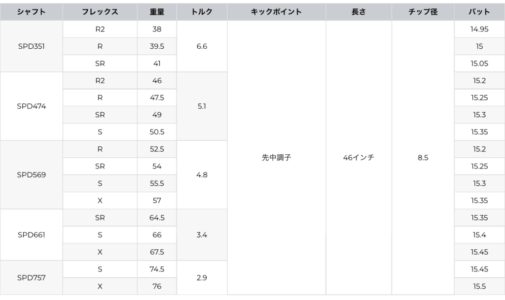 - FW(3W・5W):総重量320〜330g、バランスD1〜D2、フレックスSまたはSR