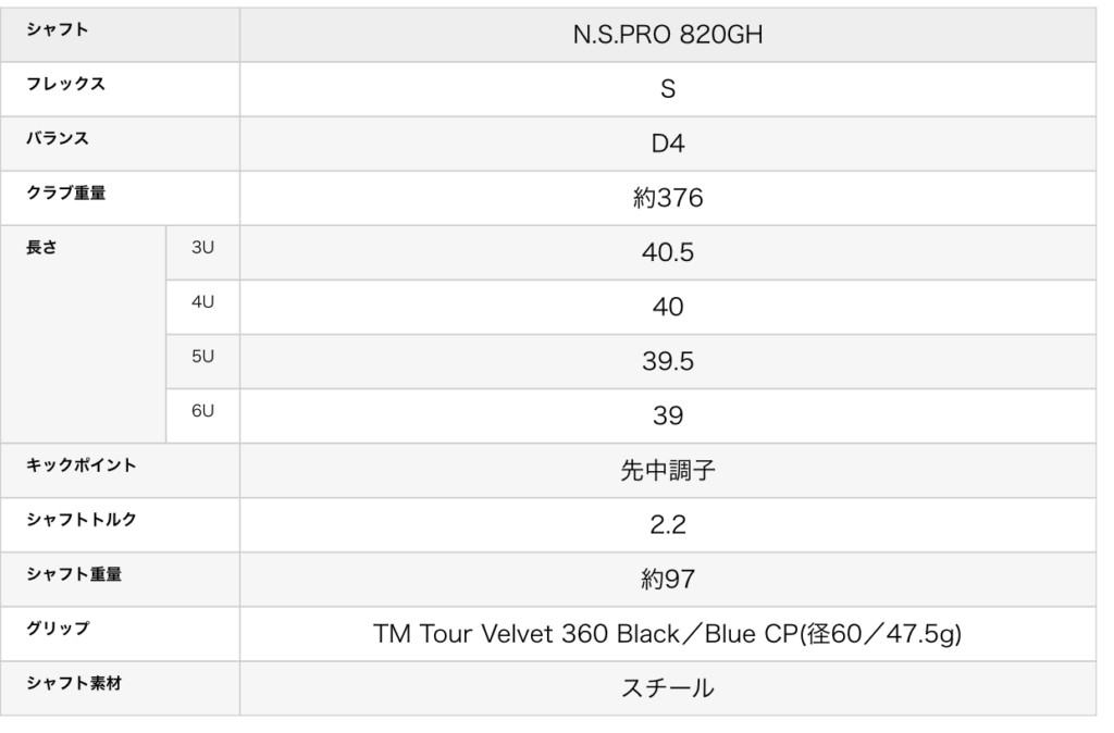 また、820GHの中調子設計により、ヘッドの挙動が過剰に走りすぎず、安定した入射角を作ることが可能です。結果として、ミスヒット時でもキャリーのバラつきが少なく、飛距離ロスを抑える効果があります。特にロングアイアンの代替として4U・5Uを採用するゴルファーにとっては、コントロール性とやさしさのバランスが極めて良好です。