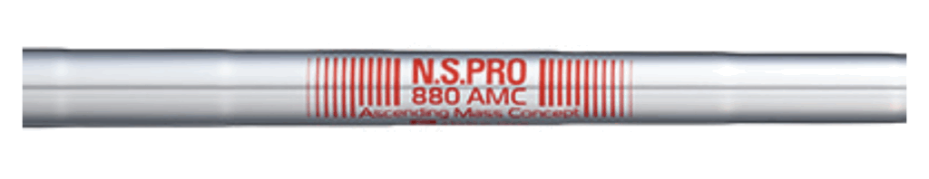 「NS PRO 880 AMC」は、日本シャフトが2018年に発表した中量級スチールシャフトで、「Ascending Mass Concept(アセンディング・マス・コンセプト)」を採用したモデルです。この設計は、番手が短くなるにつれて重量が増えるように設計されており、スイング全体のリズムを一定に保つことを目的としています。たとえば、#3アイアン用が約103g、#9アイアン用で約110gと、約7gの重量差が設定されています。