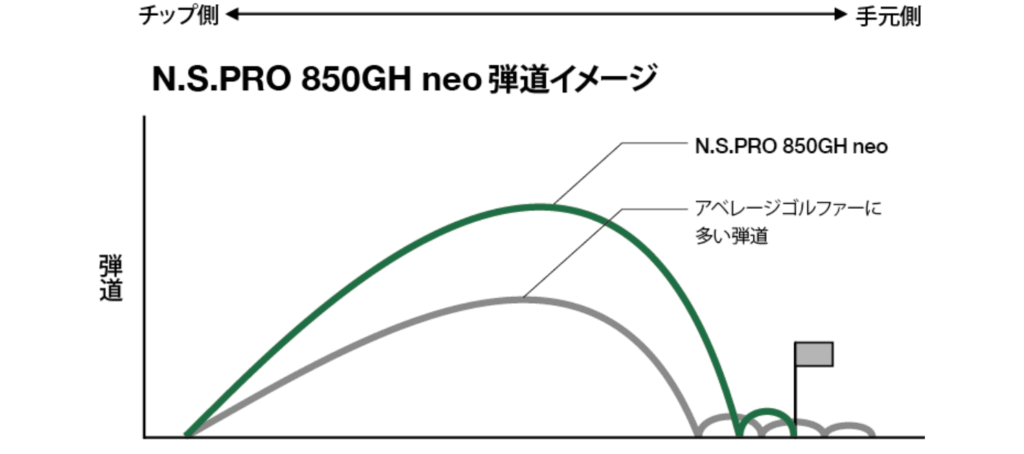 従来の 850GH は軽量スチールとして人気がありましたが、国内外でのアイアンヘッド設計の進化に伴い、軽量化されたヘッドに最適化されたシャフトが求められるようになりました。NS PRO 850GH neo は、