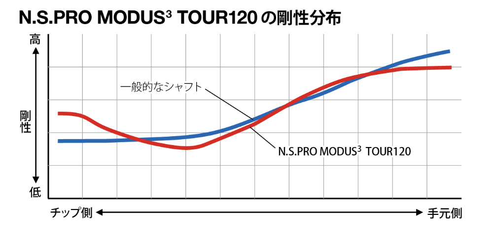 モーダス120は、パワーがあるプレーヤーに最適化されたシャフトです。