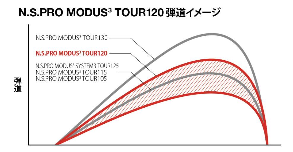 モーダス120は最もツアー向けであり、「方向性+操作性+強い弾道」 を最大化したモデルです。