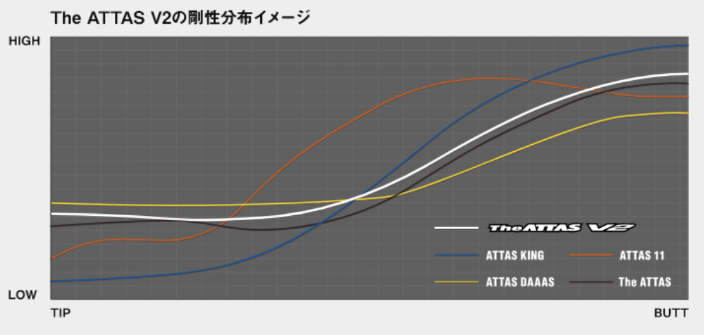 これらを満たしたモデルです。アッタスV2はこれらの条件にすべて当てはまっているため、40m/s帯のプレーヤーにとって非常に扱いやすいシャフトと言えます。
