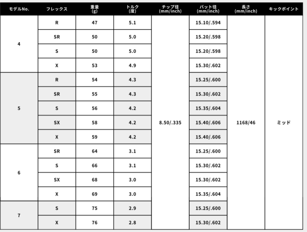- 重量とフレックス:50〜60g台前半、SR〜Sフレックスで、扱いやすさと安定性を両立