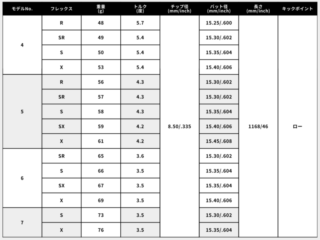 40〜48m/sのゴルファーまで幅広く対応するため、初めてのカスタムシャフトとしても選びやすい完成度を備えています。