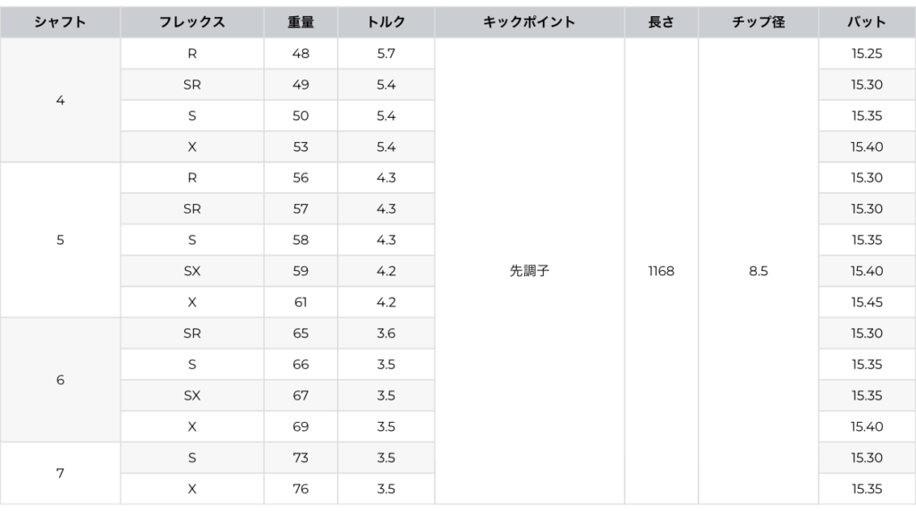 4Xの適正ヘッドスピードは、おおむね 43〜48m/s が目安になります。アッタスキングの中でも4Xはタイミングの取りやすさが特徴で、しなり量と戻りのリズムが素直なため、Xフレックスとはいえ比較的扱いやすい硬さになっています。叩きにいくよりも“振り抜きの軽快さ”を重視したタイプで、同じXでも負担が少ないスペックです。