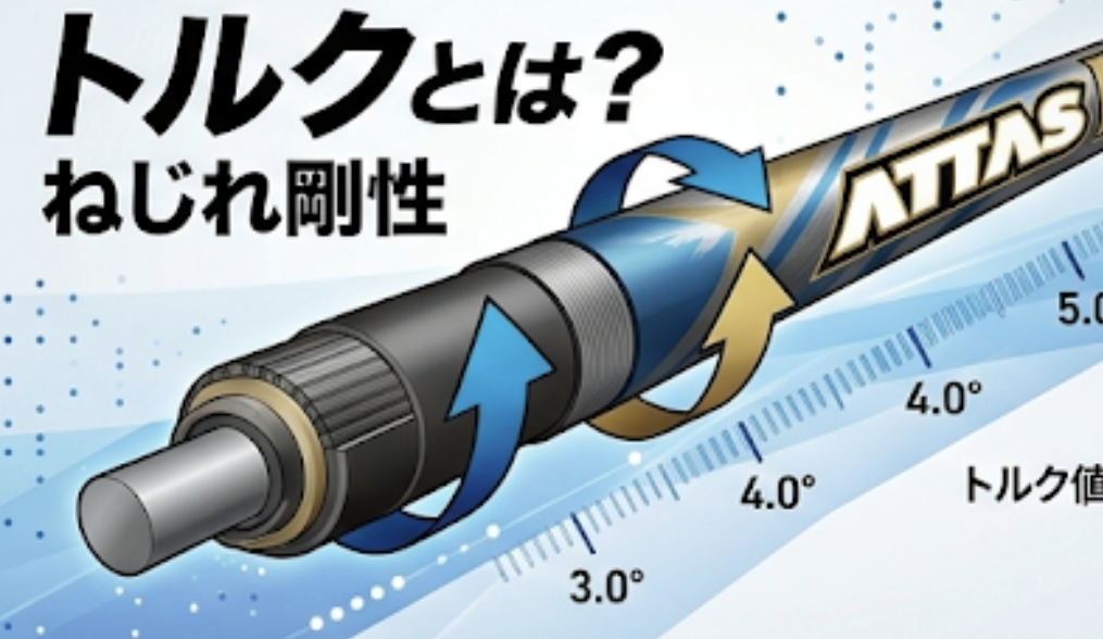 アッタス キングの振動数を語るうえで、トルク特性は切り離せません。トルクとはシャフトのねじれ量を示す指標で、数値が小さいほどねじれにくく、数値が大きいほどねじれやすい特性を持ちます。振動数が同じでも、トルクが違えば打感や方向性の安定感は大きく変わります。
