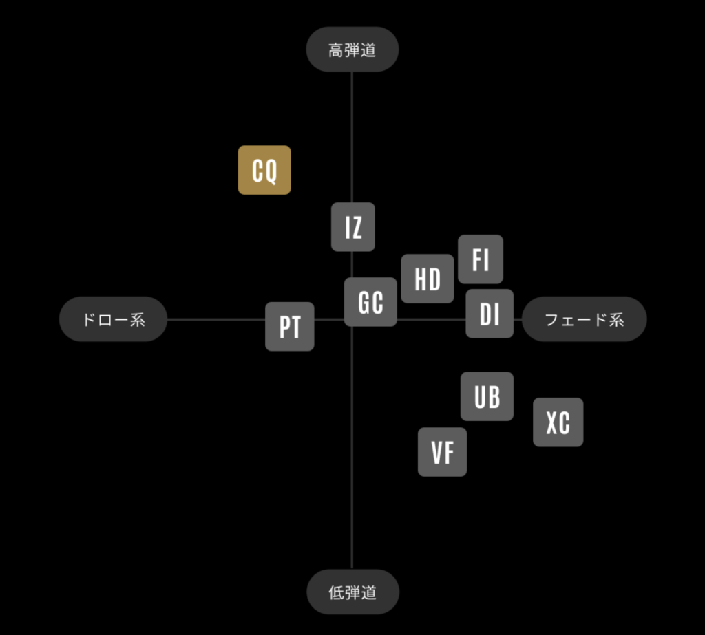 ツアーADの「マトリックス図(性能分布図)」で見ると、CQは明らかに「つかまり(Draw)」および「高打ち出し(High Launch)」の領域に位置します。近年ヒットした「UB」や「DI」が粘り系で左へのミスを嫌うセッティングなのに対し、CQはその対極に位置するモデルです。そのため、フェードヒッターが飛距離を伸ばすためにドローに挑戦したい場合や、弾道が低すぎて損をしているゴルファーにとって、最高の選択肢となります。