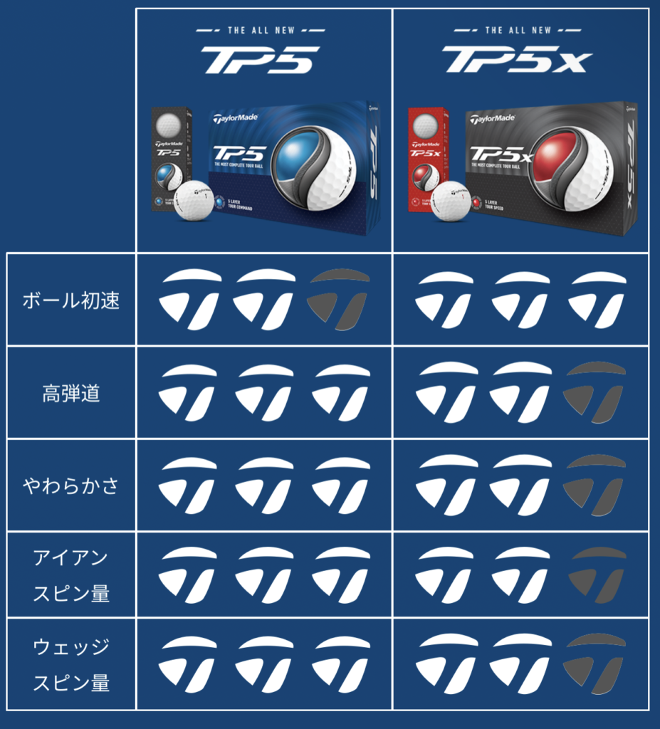 スピン量を重視するならTP5、低スピンで飛距離を伸ばしたいならTP5Xというのが基本的な考え方です。