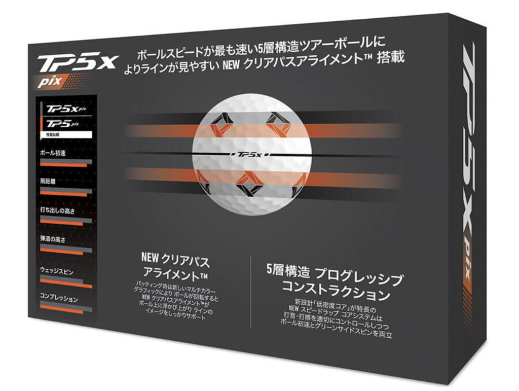TP5X PIXは、TP5Xの性能をベースに「見えるメリット」を加えたモデルであり、実戦での安定感を求めるゴルファーに特に高く評価されています。