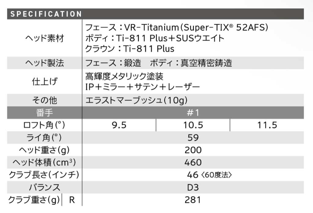 - ドライバースペック詳細