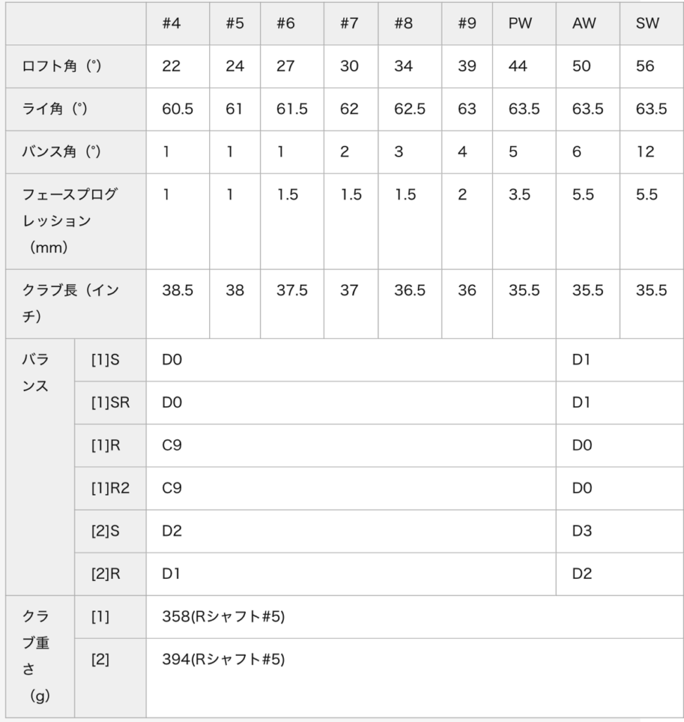 7番アイアンは30度で、当時の一般的なアイアンより約3〜4度ほどストロングロフトになっています。この設計によって、同じ番手でも飛距離が出やすい特徴があります。