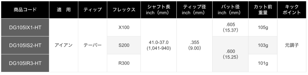 ダイナミックゴールドシリーズはもともと重量が重いことで有名ですが、DG105はその中でも軽量化されたモデルです。そのため従来のDGでは振り切れなかったプレーヤーにも適応しやすい設計になっています。