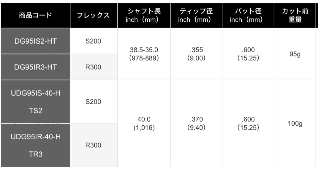 - S200: カット前重量 約95g 驚くべきは、フレックスが異なっても重量設定がほぼ同一である点です。これは、製品誤差を極限まで減らし、セット内での振り心地を統一するためのこだわりです。実際にクラブとして組み上げた際の「製品重量(5番アイアン等)」は、グリップやヘッド重量にもよりますが、概ね400g〜410g前後に収まります。これは従来のDG S200(約430g前後)と比較して、20g以上の軽量化に成功していることを意味します。