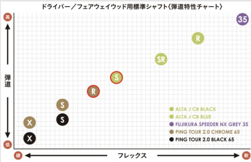 まず、最も注意すべき点は「65Rは一般的な50g台のSフレックスよりも硬い」という事実です。PING公式サイトのフィッターブログ(2025年2月28日)でも明言されている通り、クローム 65Rは標準のALTA J CB BLUEのSフレックスを上回る剛性感を持っています。